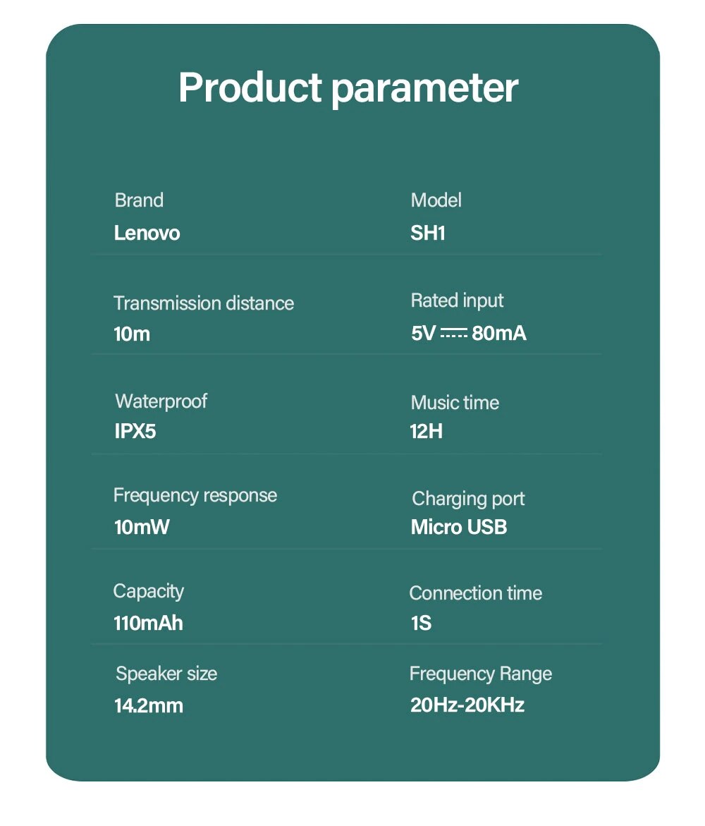 Lenovo 聯想 - SH1 頸掛半入耳式無線藍牙耳機 藍牙5.0耳機