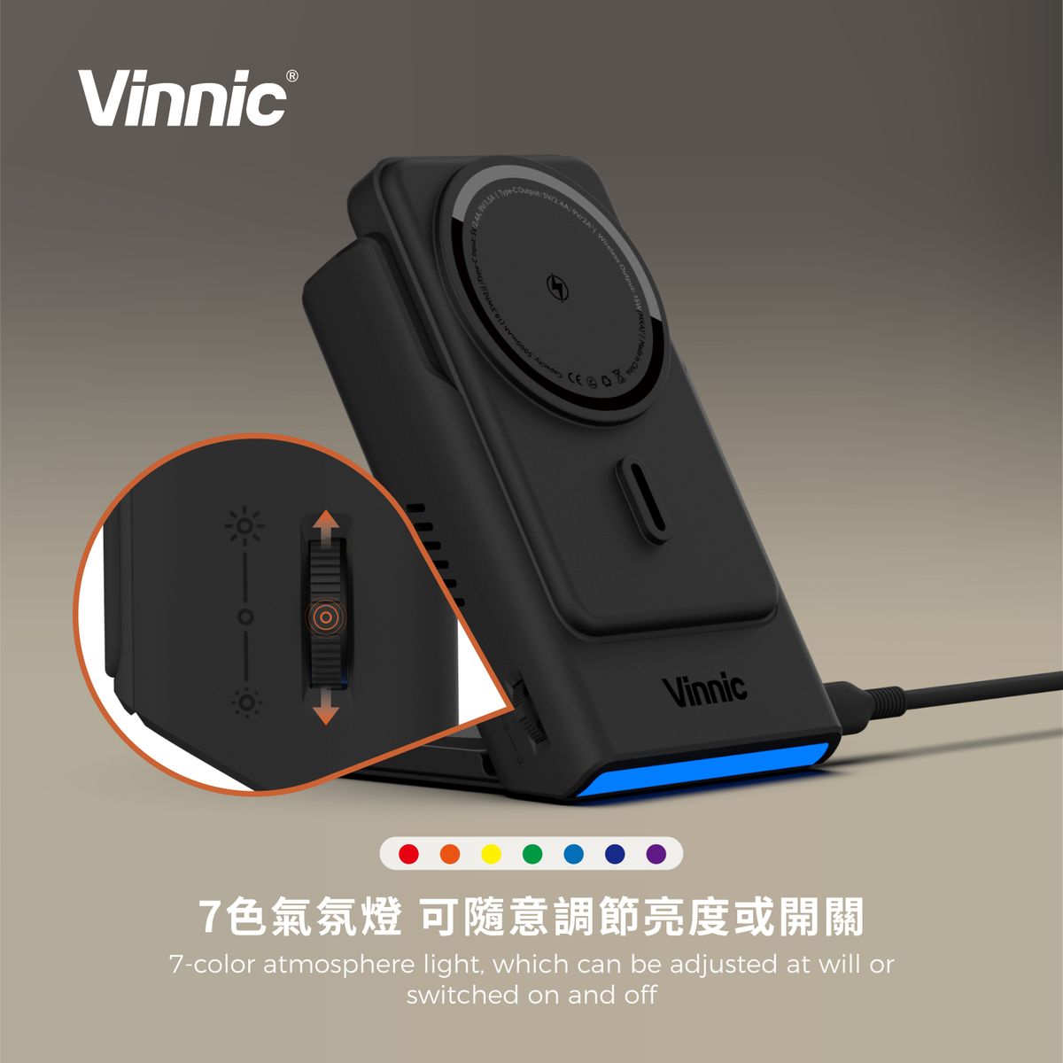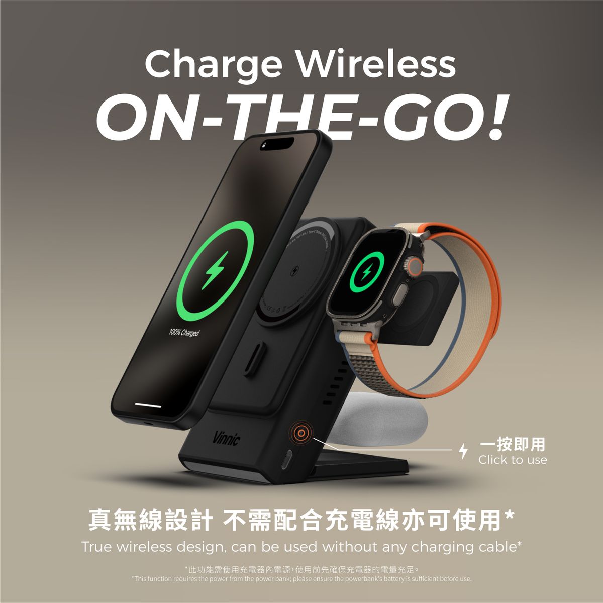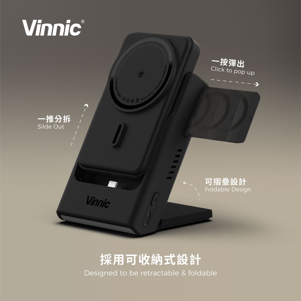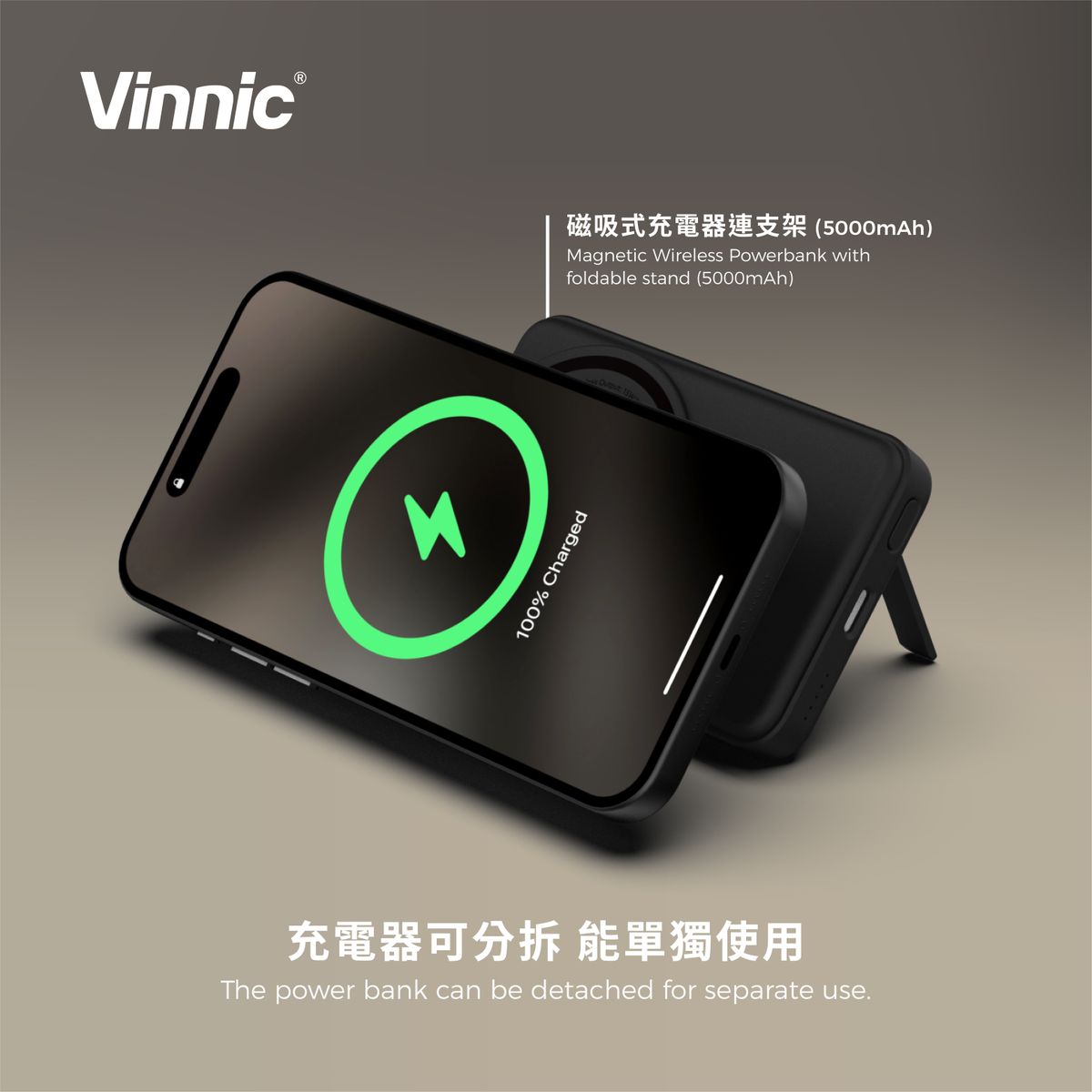 Vinnic 銀戰士電池 - AELLO PEAK 3合1 分體式 5,000mAh磁吸行動電源/無線充電座 - 原裝行貨