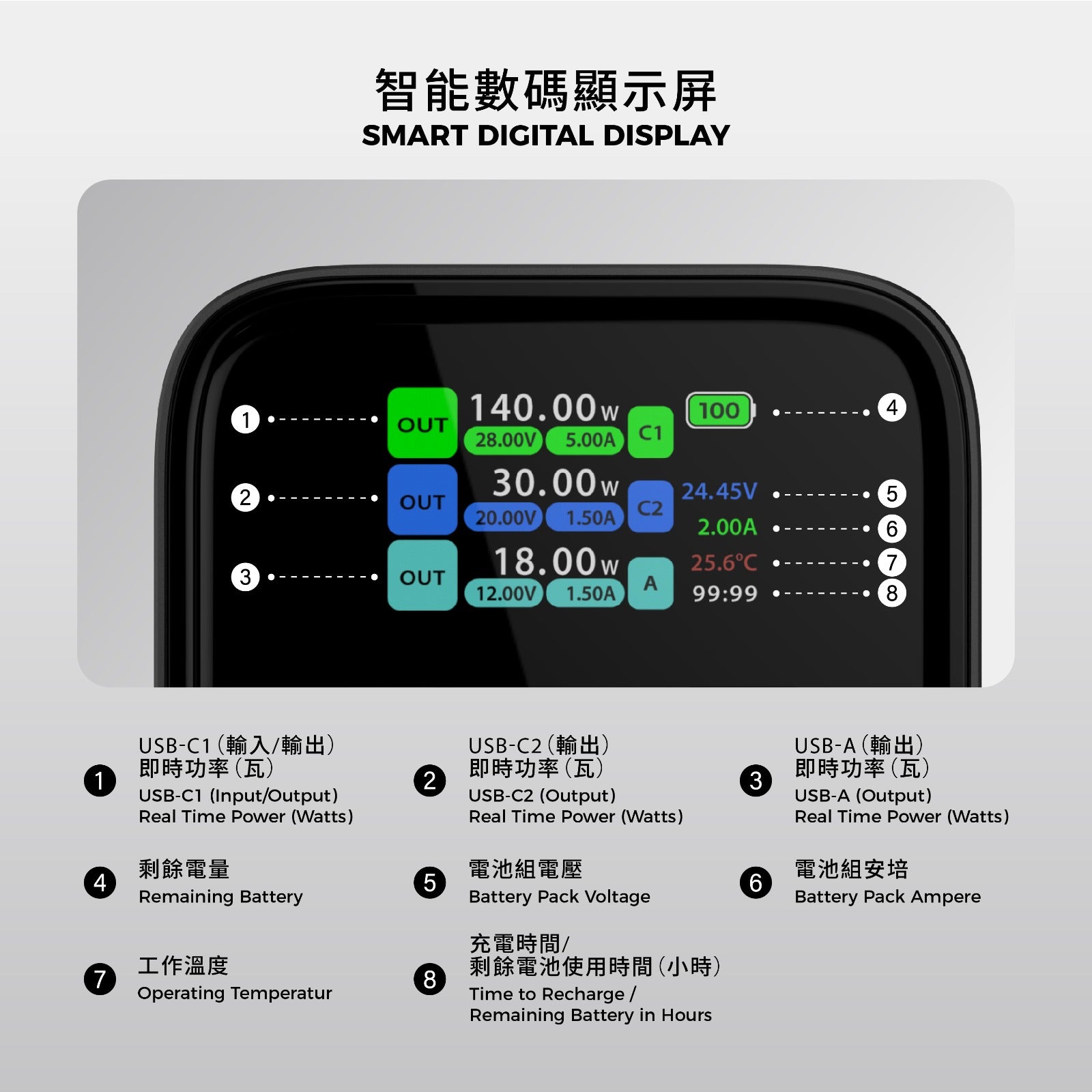 強大的 27000mAh (99.9Wh) Mount Parker 2 行動電源,具有 140W 雙向快速充電、智慧數位顯示器和多重保護功能,適用於筆記型電腦、手機等,並可攜帶上飛機。