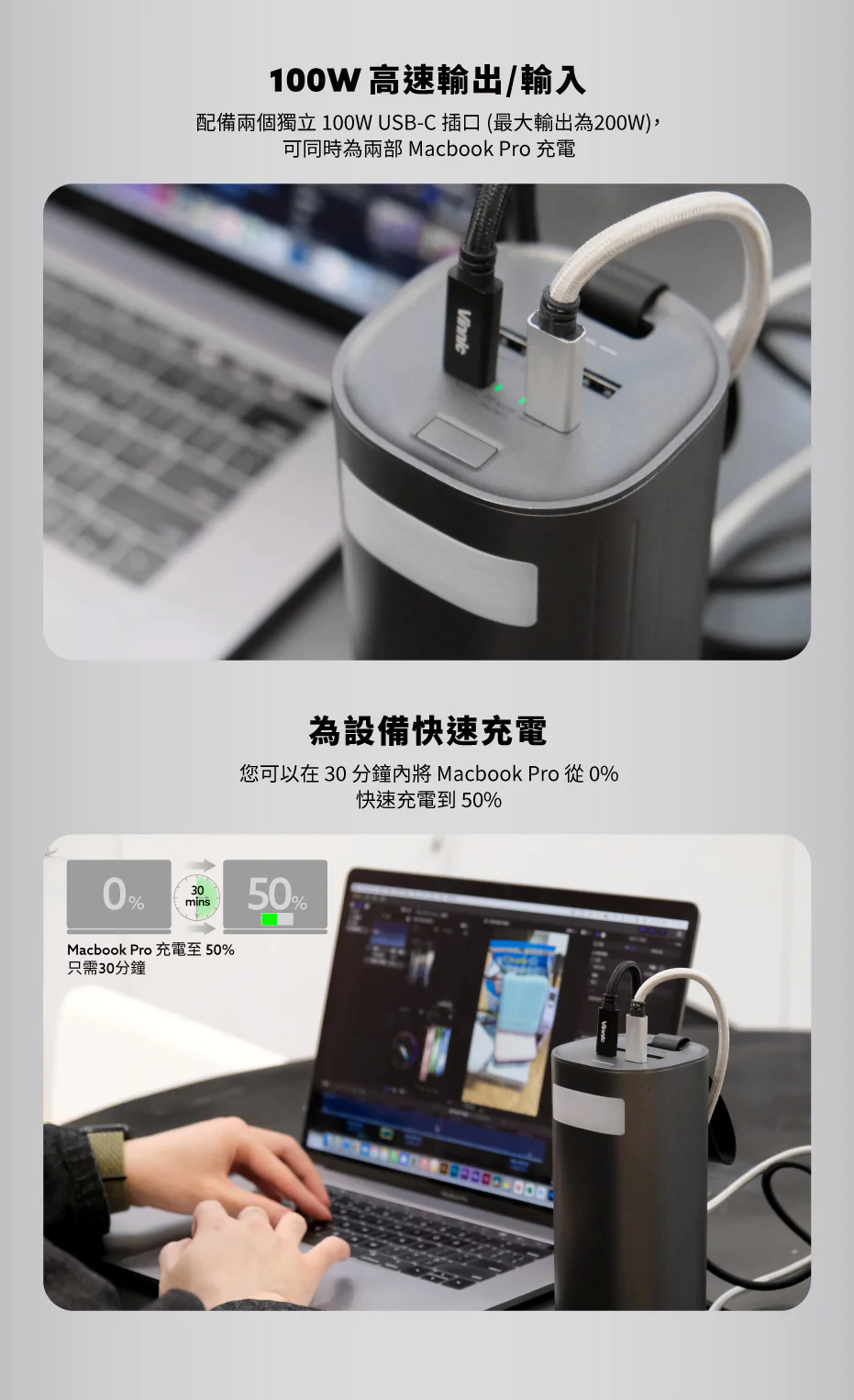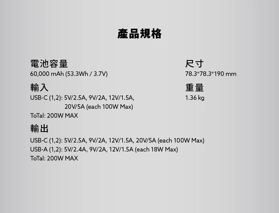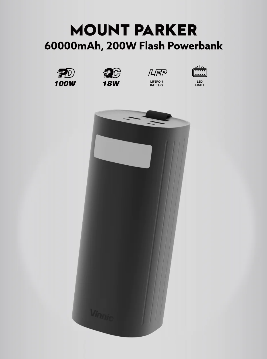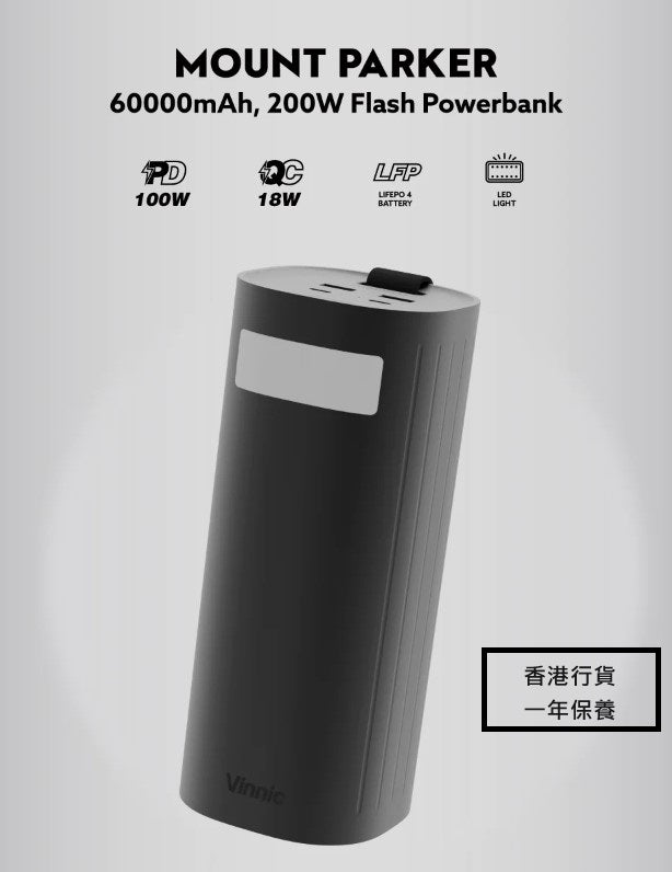 Vinnic 銀戰士電池 -【Mount Parker】60000mAh 行動電源 充電寶 (2個100W同時輸出 , 最多200W 輸出)